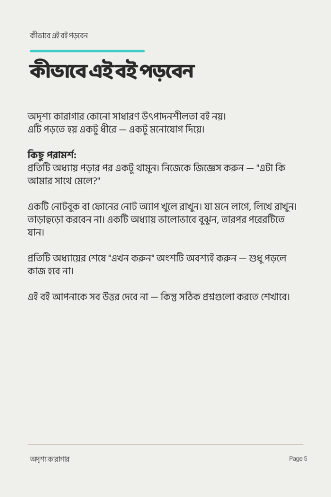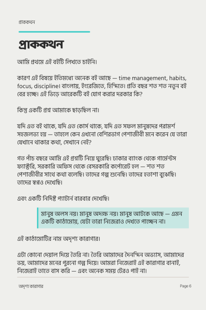 এই বইয়ের প্রথম কয়েকটি পৃষ্ঠা আমরা ফ্রি প্রিভিউ হিসেবে উন্মুক্ত রেখেছি, যাতে আপনি বইটির ভাষা, চিন্তার ধরণ এবং বিষয়বস্তু সম্পর্কে ধারণা পেতে পারেন।